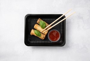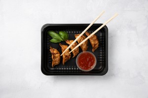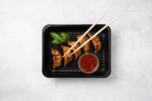 3szt Sajgonki Mięsne, 3szt Sajgonki Warzywne, 3szt Krewetki w tempurze, 3szt Pierożki Gyoza, 3x sos sweet chilli, 3x sos kimchi-mayoo